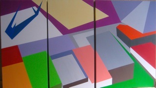 Alessandro Raimondi realizza composizioni di grande formato, utilizzando colori acrilici e drastici accostamenti cromatici, che celano sotto un “apparente decorativismo” una critica alla ipertecnologica società contemporanea. Le geometrie dei quadri, ad esempio, rappresentano memorie di scorci di metropoli contemporanee, così squadrate, efficienti, perfette ma al tempo stesso luoghi di solitudine, appiattimento e chiusura dell’uomo, imprigionato nel caos di una realtà altamente tecnologica ma vuota nella sua essenza ed effimera nei contenuti.