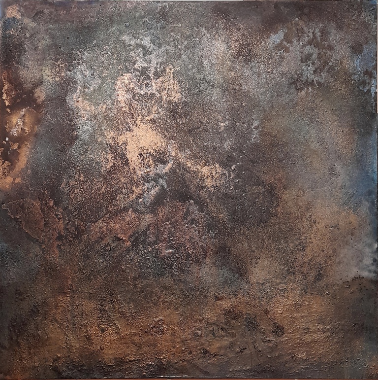 What I try to communicate with my painting is what I feel looking at the surfaces of the Earth or taking a look at the universe where, of course, everything is evolving and constantly changing like my works that do not always remain stationary. Hence my art which is not figurative, if not in a vague part, is material, stratiform, evocative; I try to convey new visions and hopes by admiring the creations of nature that manage to take my breath away, as they take my breath away when I see them disfigured unfortunately too often by the intrusive and excessive presence of man. I create using as a base, in addition to the classic canvas, wood and often recycled iron, materials that evolve over time. The color is given by applying layers of cement and pigments several times. The holder can be burnt, rusted. My name is Corrado Scarsi I live in Milan I have no academic qualifications, I only have a constant and continuous research on a different use of materials with an eye to the great masters.