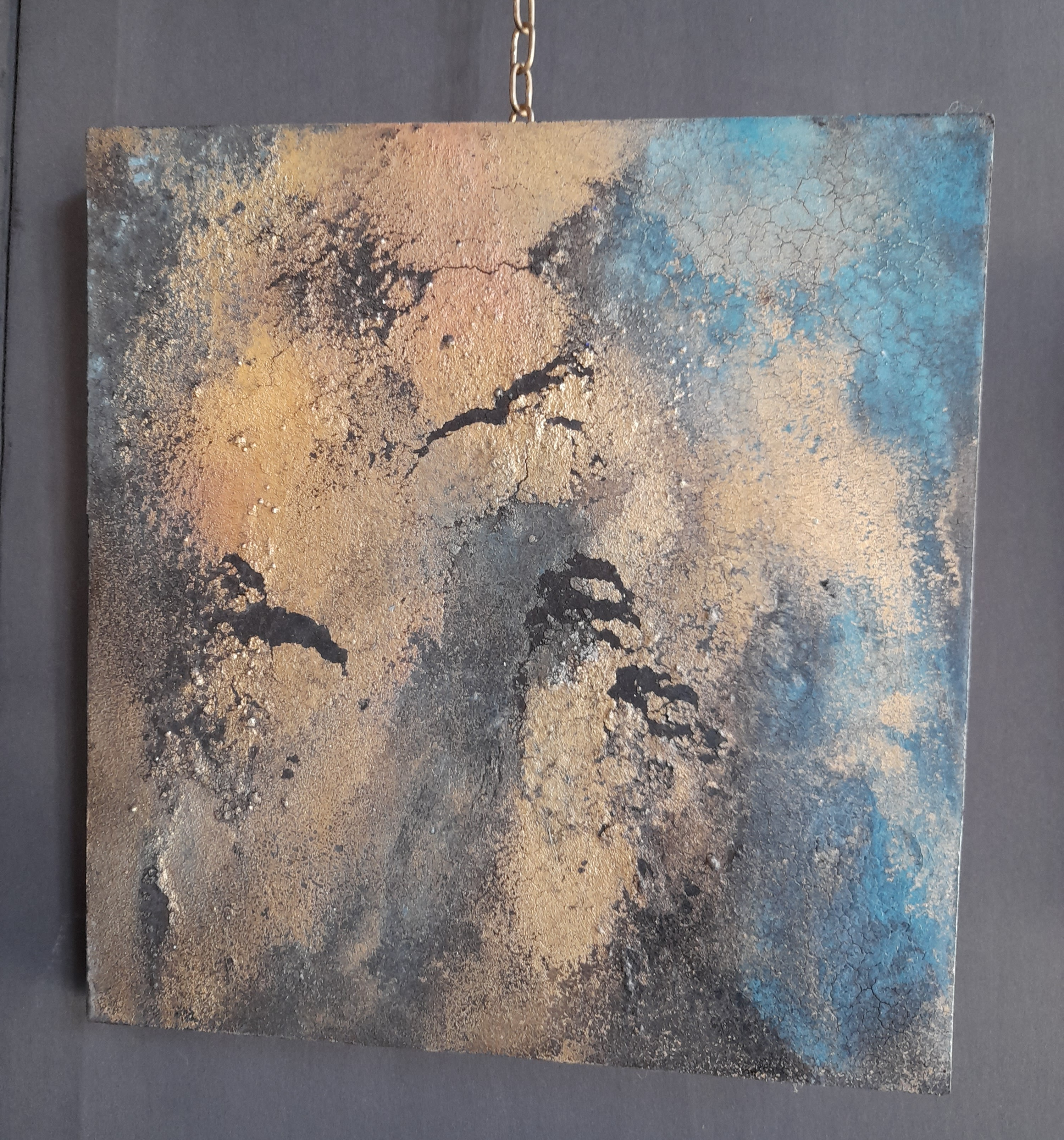 Da qui nasce la mia arte che non è figurativa, se non in vaga parte, è materica, stratiforme, evocativa ; cerco di trasmettere nuove visioni e speranze ammirando le creazioni della natura che riescono a togliermi il fiato, come me lo tolgono quando le vedo deturpate purtroppo troppo spesso dalla presenza invadente ed eccessiva dell’uomo.