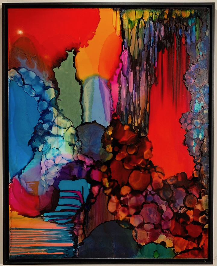 La caratteristica principale della opere in resina, è la capacità di rifletterne i colori attraverso un effetto specchiato, proponendo all’osservatore un’esperienza visiva più intima ed introspettiva come se fosse dinanzi ad uno specchio che guarda dritto dentro sé.