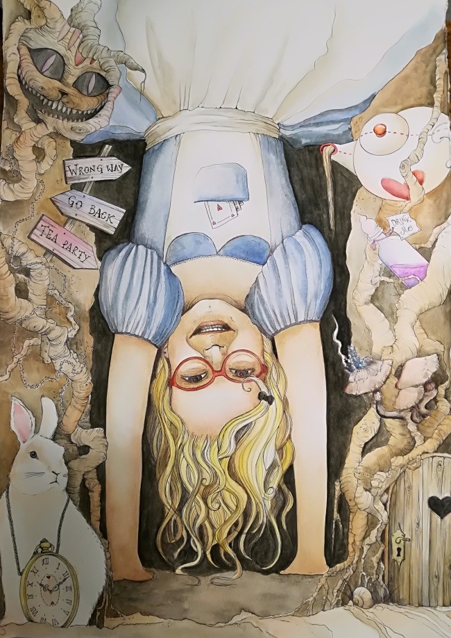 L’idea che sta dietro alle sue opere è quella di unire il mondo della fiaba e del teatro al disegno per trasportare il protagonista nella sua storia preferita e trasformarlo nel personaggio che meglio rappresenta la sua personalità. È chiara l’ispirazione alle linee dell’illustrazione o del fumetto e agli ambienti del surrealismo nelle opere della giovane pittrice.
