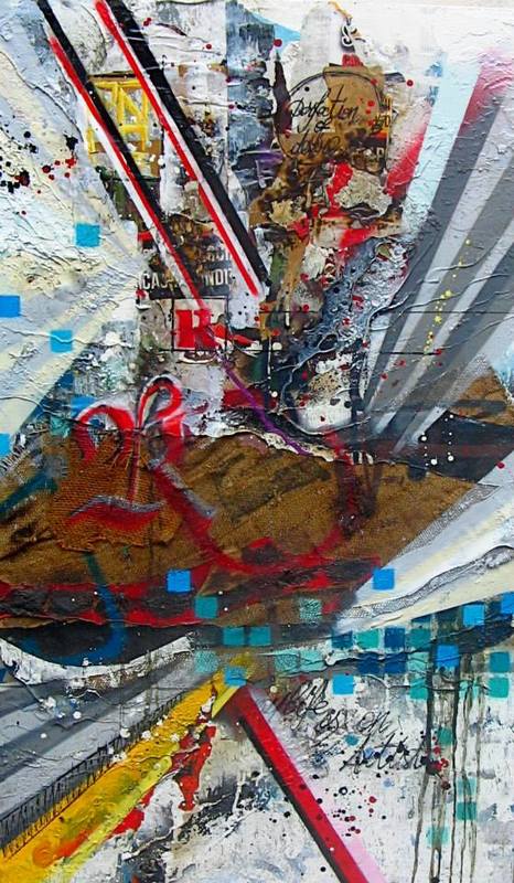 “The paintings of Omar Canzi arise from informal impulse typical of many past artistic movements that have experienced the abolition of figuration in favor of a more clear and direct expression. The expressive impulse translates directly into colors and overlay materials, in a creative flow in which, together with the elements of subjectivity, also includes suggestions of the substrate urban artist. There are thus works that leaves no room to figuration, able to achieve a strong and direct communication, thanks to a mixture and a synthesis of colors, materials and residues of graffiti. </ em> “