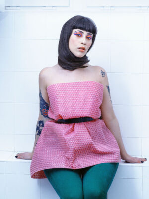 Per tutta l’estensione della parete sono rappresentate le diverse pose della kick boxing: diretto, gancio, montante, calcio frontale, laterale, ginocchiata attraverso delle figure femminili, che indossano maschere da animali intervallate da guantoni muniti di occhi.